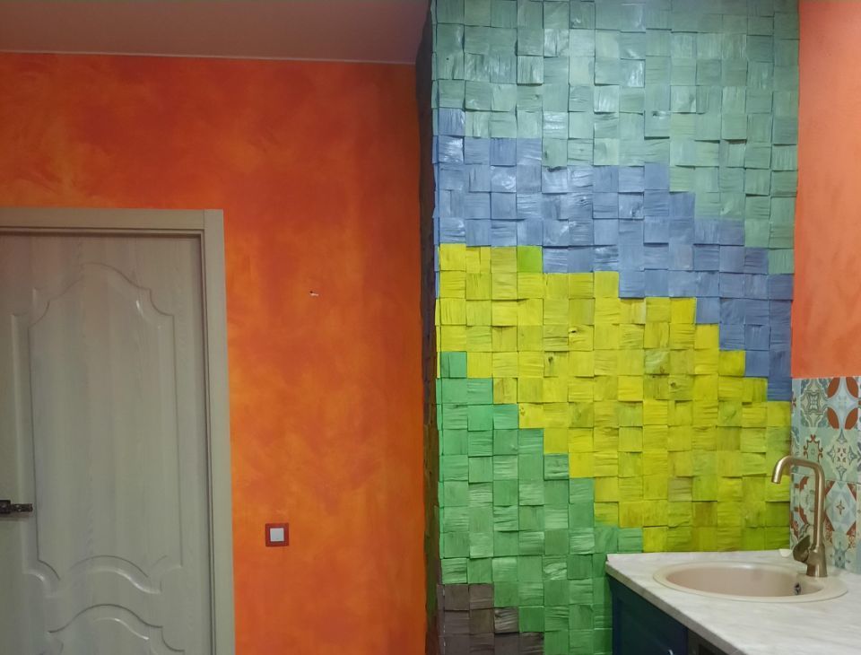 Короб обшит деревянной мозаикой на заказ. Также при желании можно перекрасить лазурью или заменить на свое усмотрение.