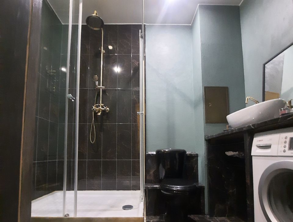 Вся мебель и техника входит в стоимость и остается покупателю: кухня 4,5 пог.м. с керамической мойкой и латунным смесителем, новый холодильник, посудомоечная машина на 14 комплектов, варочная панель и духовой шкаф, вытяжка, небольшая столовая группа на 2 персоны, чайник, кровать, шкаф, комод, прикроватная тумба, диван-тахта, напольное зеркало, душевая зона 1,21 м с латунной душевой системой, стиральная машина и др. наполнение ванной. Есть также сушилка для белья, стремянка, 2 стула на балконе (оставлю покупателю).