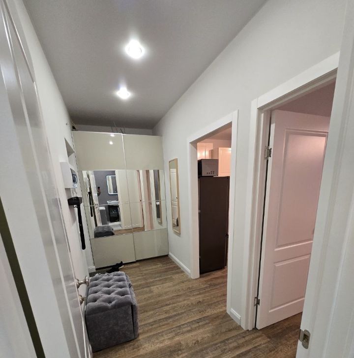 Сдаётся уютная и тихая однокомнатная квартира с евроремонтом в современном доме 2020 года постройки. Общая площадь квартиры составляет 42.1 кв. м, жилая — 16.8 кв. м, а просторная кухня занимает 11.2 кв. м. Расположена на 7-м этаже 12-этажного дома. Высота потолков — 2.7 метра, окна выходят во двор, что делает проживание комфортным и тихим.