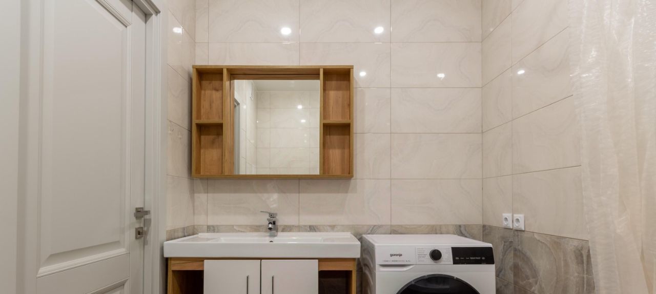 - Мебель и техника остаются новым владельцам: посудомоечная и стиральная машины, холодильник, варочная панель, духовой шкаф.