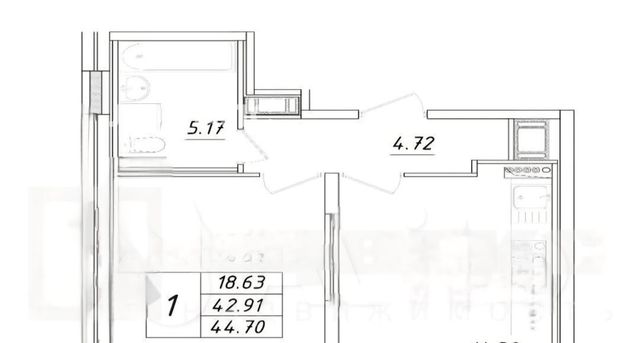 1-к кв. Санкт-Петербург ул. Среднерогатская, 13к1 (44.7 м²)