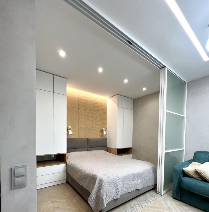 - комната с выделенной зоной для сна и гостиной,