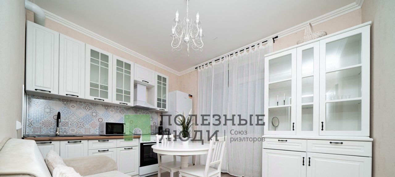 В квартире выполнен свежий, современный евроремонт с использованием качественных материалов. Интерьер оформлен в приятных светлых тонах с элегантной белой мебелью, что визуально расширяет пространство и создает атмосферу уюта.