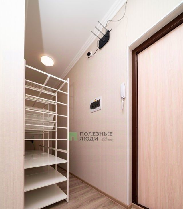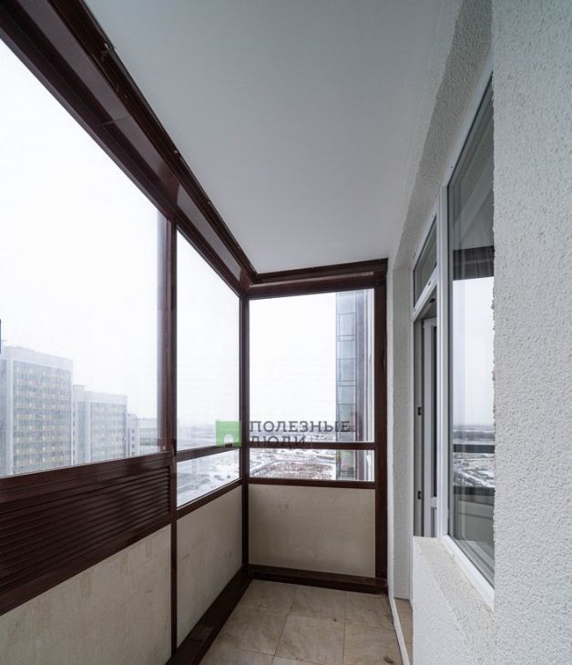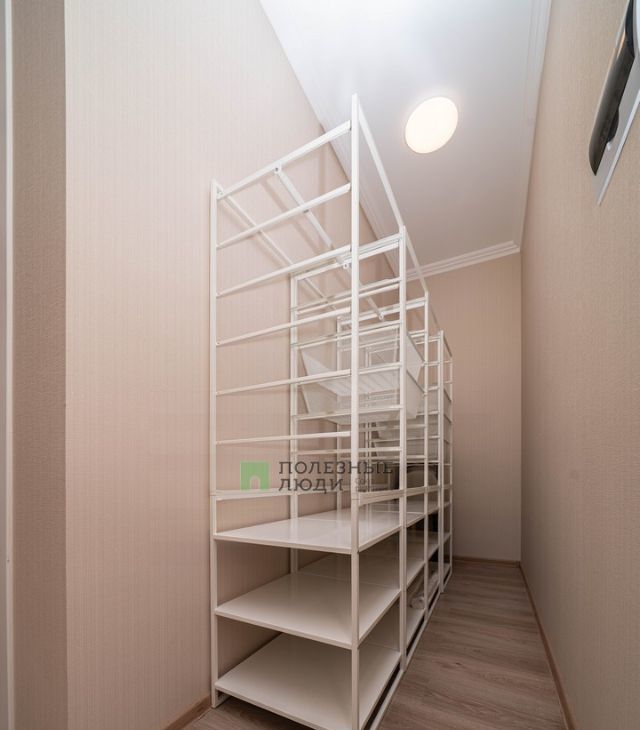 Прихожая и балкон: в коридоре организована удобная открытая система хранения (стеллаж). Также есть просторная застекленная лоджия.