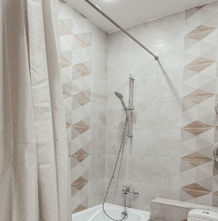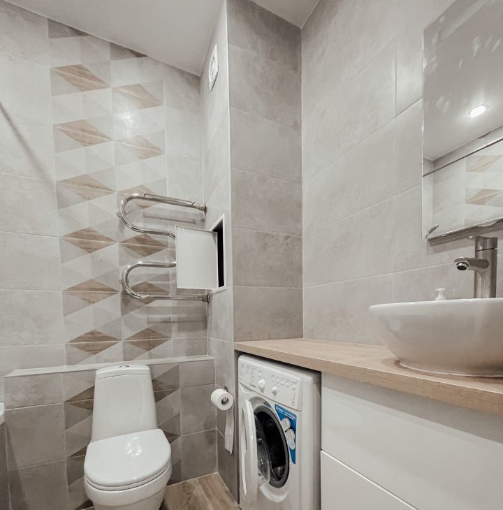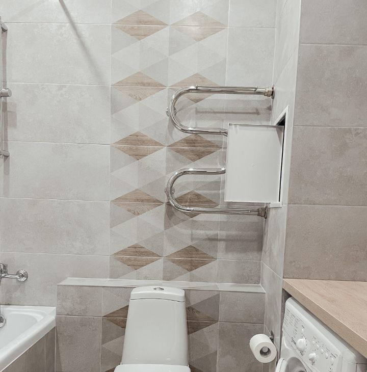 Полноразмерная ванна установлена в совмещенном с/у.