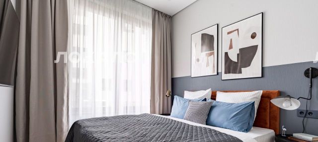Спальня: двуспальная кровать с матрасом из натурального латекса, Smart TV, вместительный шкаф.
