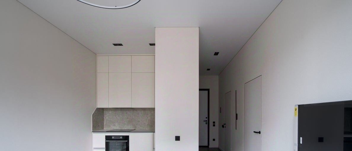 Объединённое пространство кухни-гостиной с возможностью зонирования.
