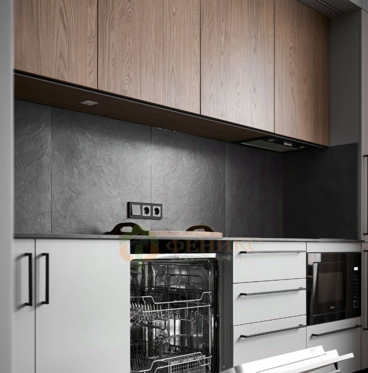 Новая кухня, вся бытовая техника : варочная панель, вытяжка, холодильник , посудомойка, духовой шкаф , стиральная машина с сушилкой .