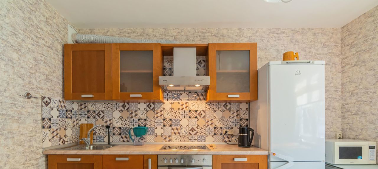 Квартира прошла евроремонт и полностью готова к проживанию. Просторная жилая площадь в 19 кв. м и кухня площадью 11 кв. м обставлены мебелью. В наличии вся необходимая техника: холодильник, телевизор и стиральная машина.