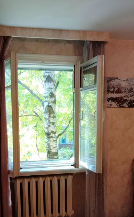 Квартира тёплая светлая окна выходят в тихий и зелёный двор много деревьев.