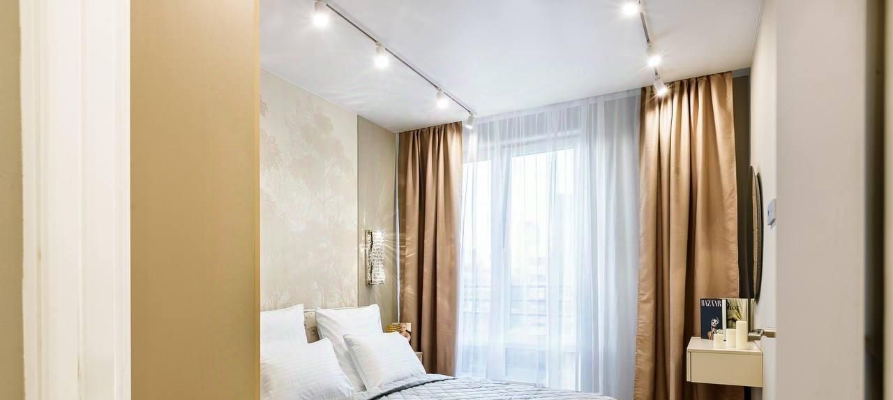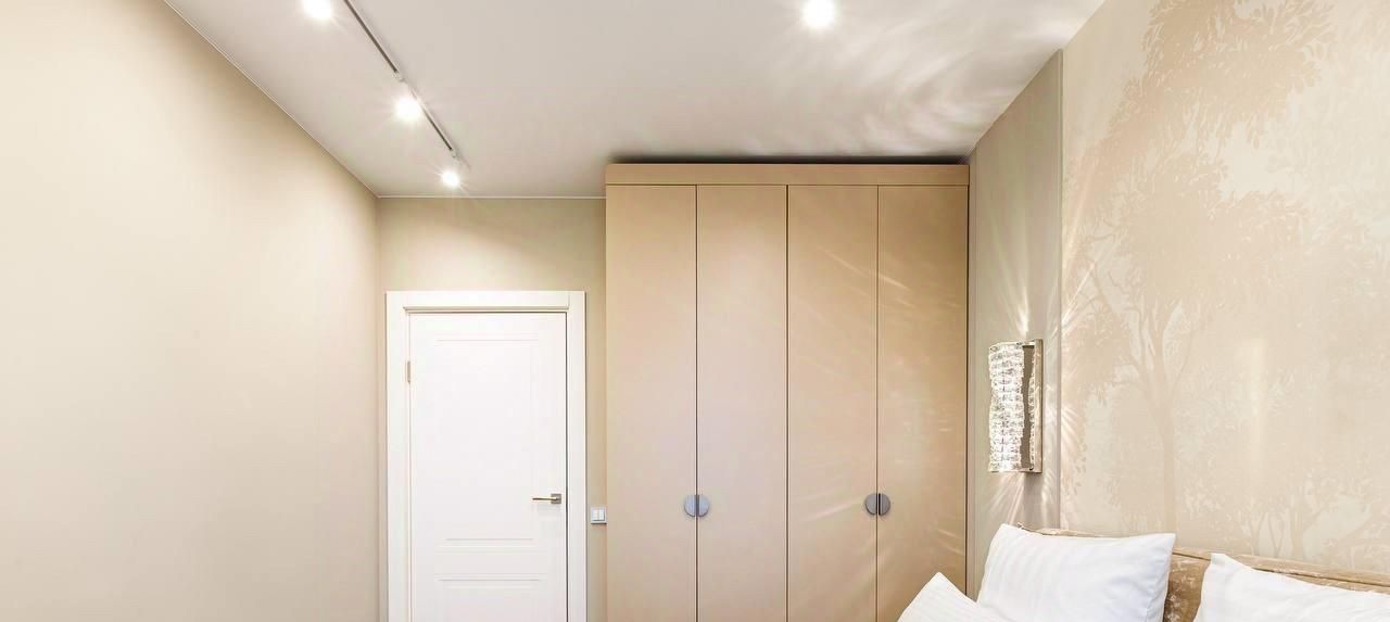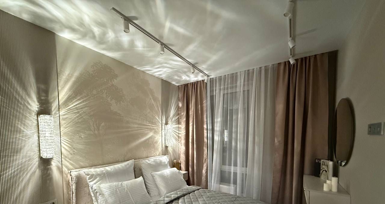 Идеальная спальня, кровать с подъемным механизмом, много продуманного света.