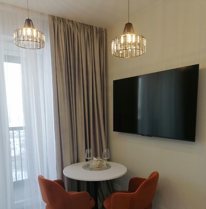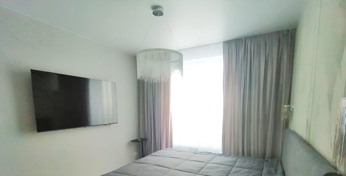 Квартира полностью укомплектована всем необходимым для жизни: новая бытовая техника (холодильник, микроволновка, духовой шкаф, посудомоечная машина, индукционная плита, эл.чайник, эл. кофе-турка, две большие телевизионные панели, кондиционер), посуда для приготовления пищи, столовые приборы (вилки. ложки, тарелки, бокалы и др.), новое постельное белье, 2-х спальная кровать с ортопедическим матрасом, гладильная доска, пылесос и др.).