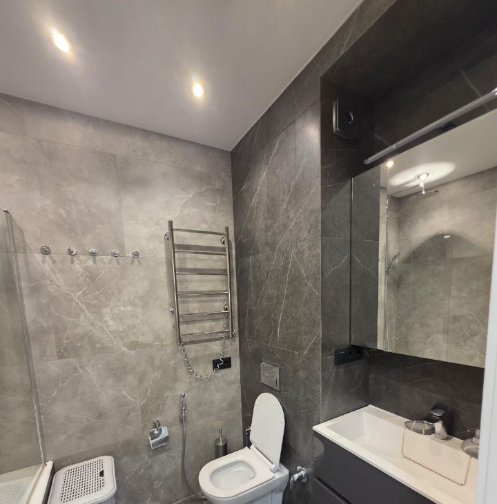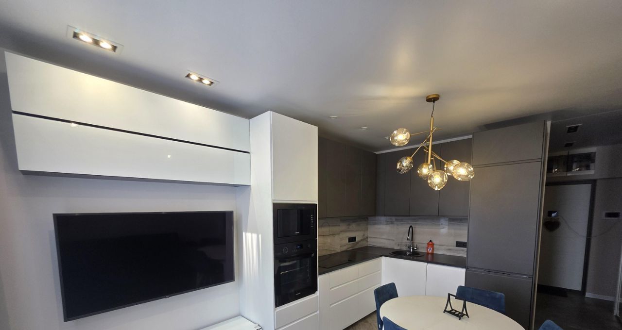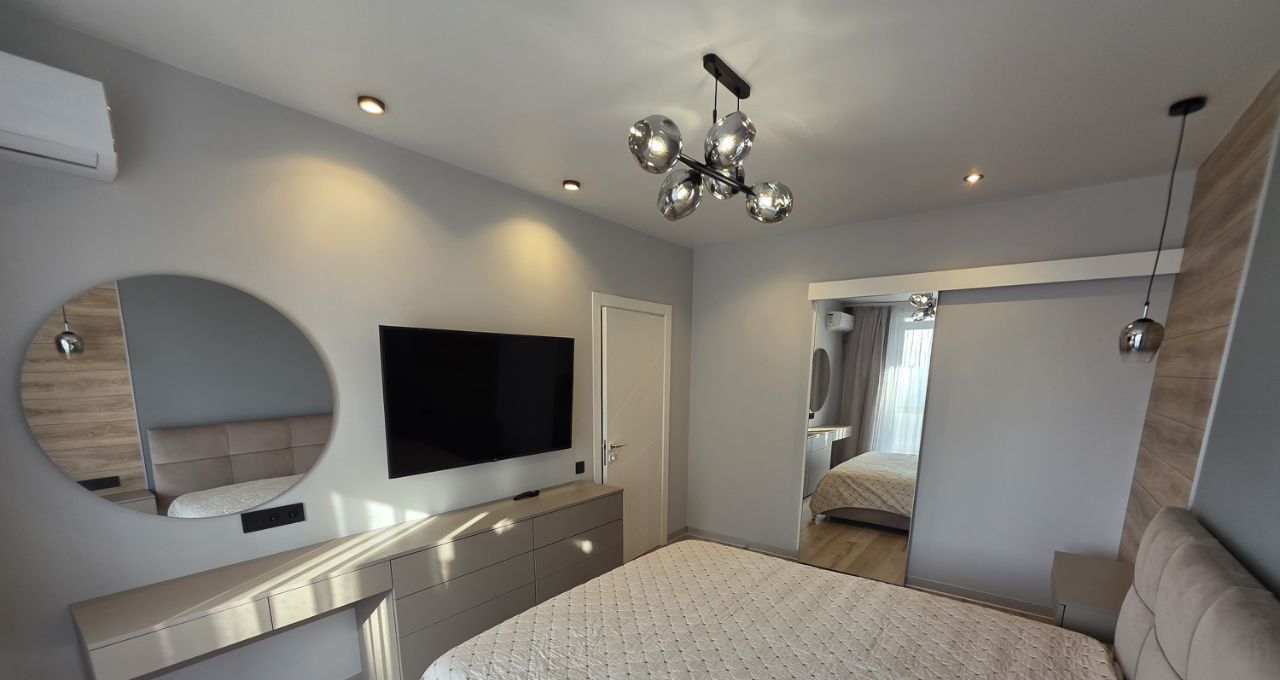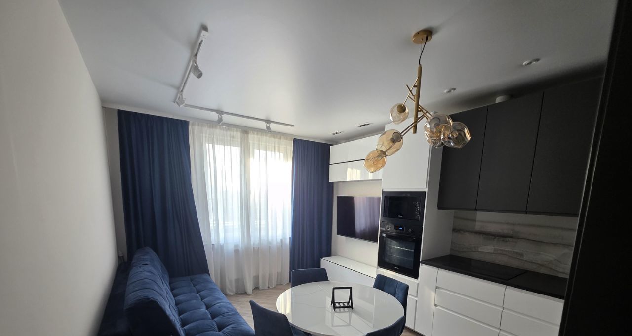 Квартира полностью меблирована и готова к проживанию. В комнате и на кухне есть вся необходимая мебель. Совмещенный санузел оборудован ванной. Из техники: кондиционер, холодильник, посудомоечная и стиральная машины, телевизор. В квартире есть лоджия, где можно насладиться видом.