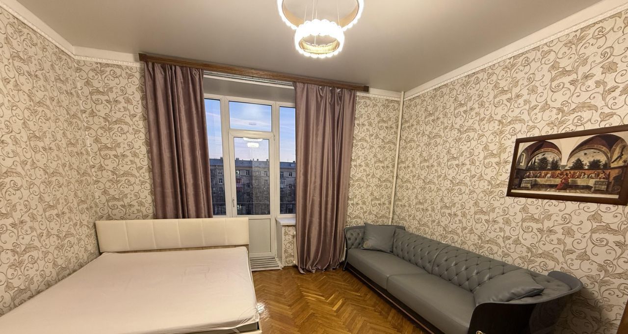 Московском районе Санкт-Петербурга, рядом с Московским проспектом и станцией метро Московская. Сталинский дом с высокими 3 метровыми потолками - очень просторная и атмосферная квартира!