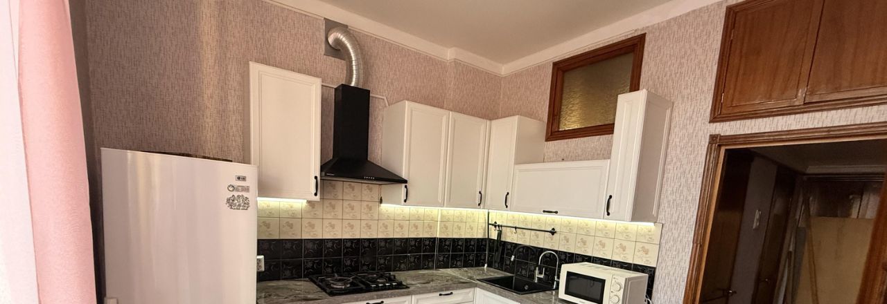 Кухня оснащена всей необходимой бытовой техникой, включая СВЧ печь.
