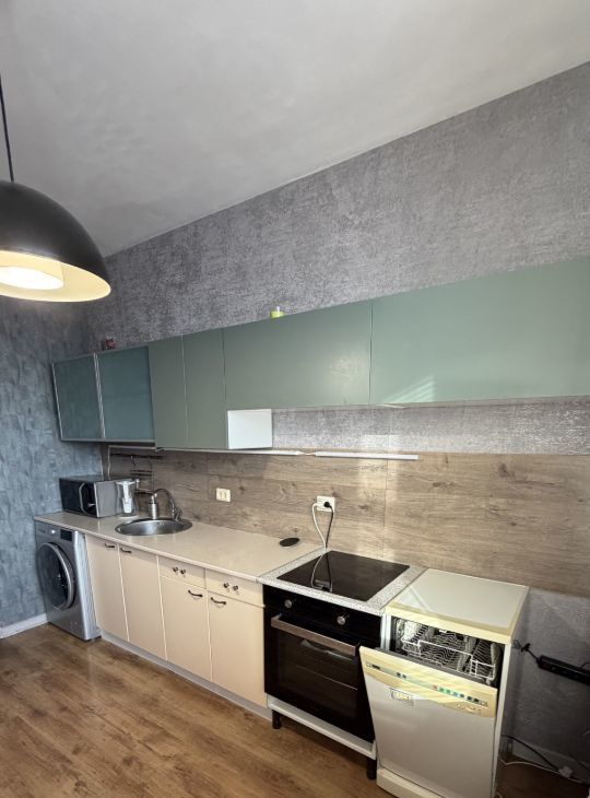 В квартире сделан современный евроремонт. Есть все необходимое для комфортного проживания: кухня оснащена мебелью и техникой, включая холодильник и посудомоечную машину. В комнате установлена мебель для отдыха и сна. Ванная комната оборудована ванной, а в квартире есть стиральная машина. Для поддержания комфортного микроклимата установлен кондиционер. Окна выходят на улицу, в квартире светло и уютно.