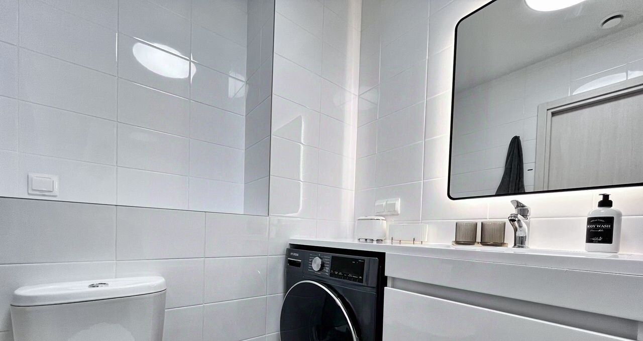 — В квартире установлено всё необходимое для комфортного проживания: от посудомоечной машины и СУШИЛЬНОЙ машины до огромного телевизора.
