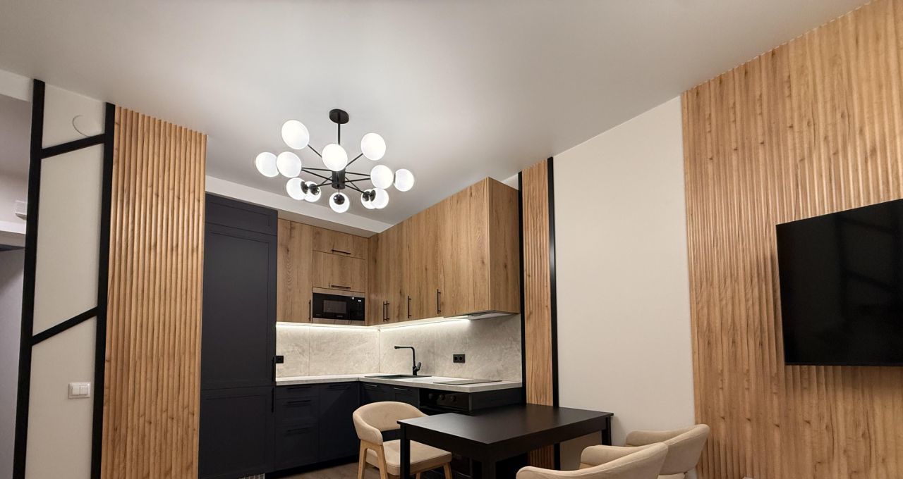 Сердце квартиры - это просторная красивая современная кухня-гостинная.