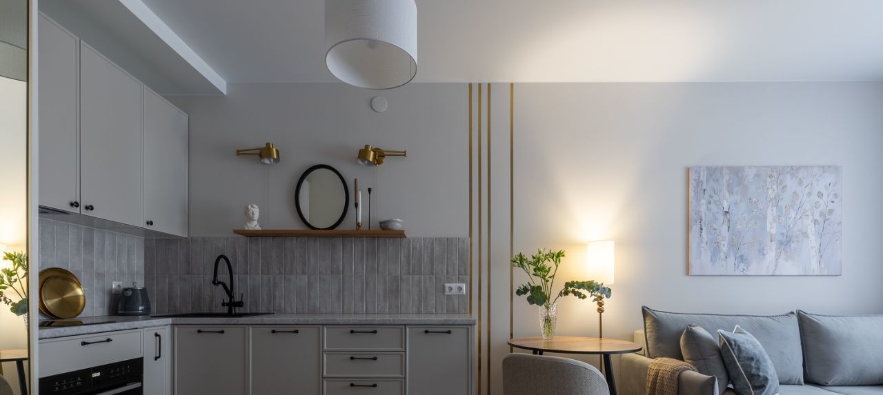 Очень уютная, продуманная квартира с удобной планировкой: просторная кухня-гостиная и отдельная спальня.