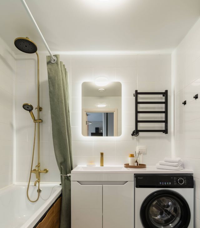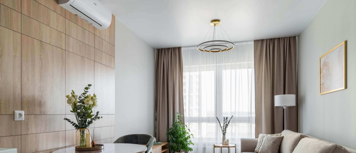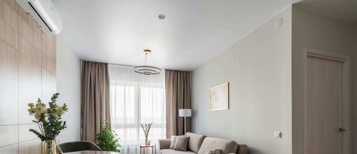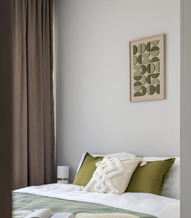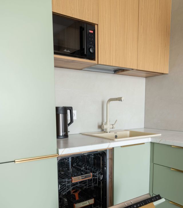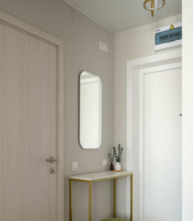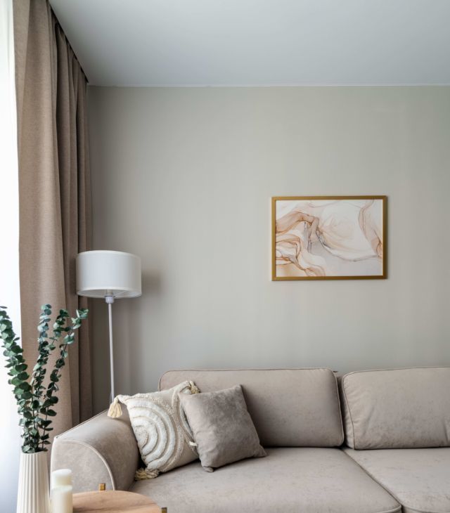 Квартира оформлена в нейтральных, тёплых оттенках с акцентами — создаёт ощущение уюта и как дома с первого взгляда.