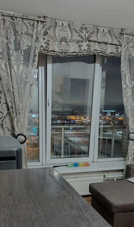 Видовая студия в кирпичном доме 2009г. постройки. Один взрослый собственник. 7мин пешком до метро Международная. Есть вся необходимая техника и мебель. Вид на СКА арену и Яблоневый сад.