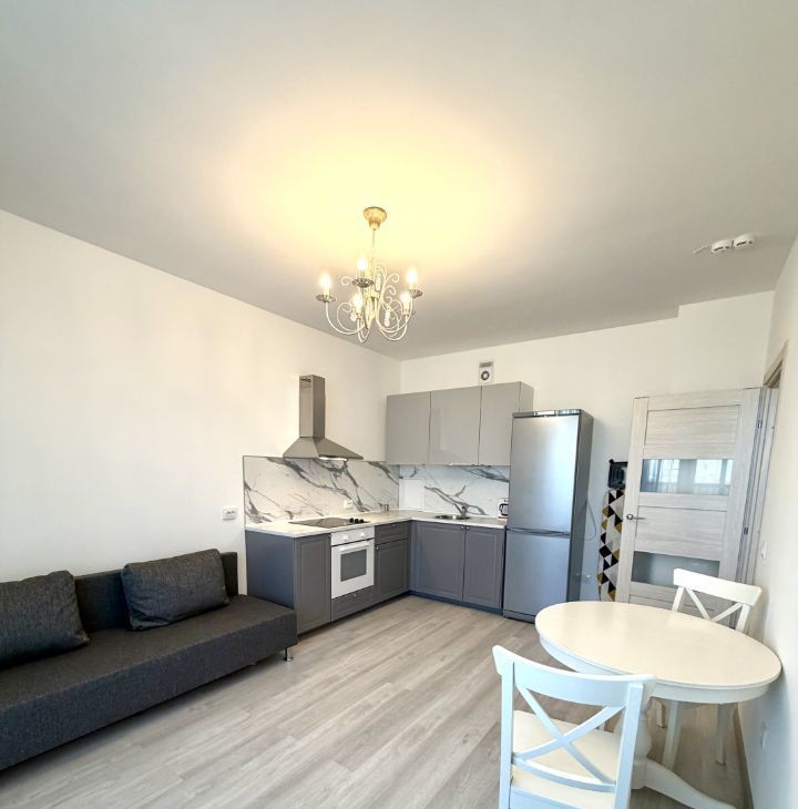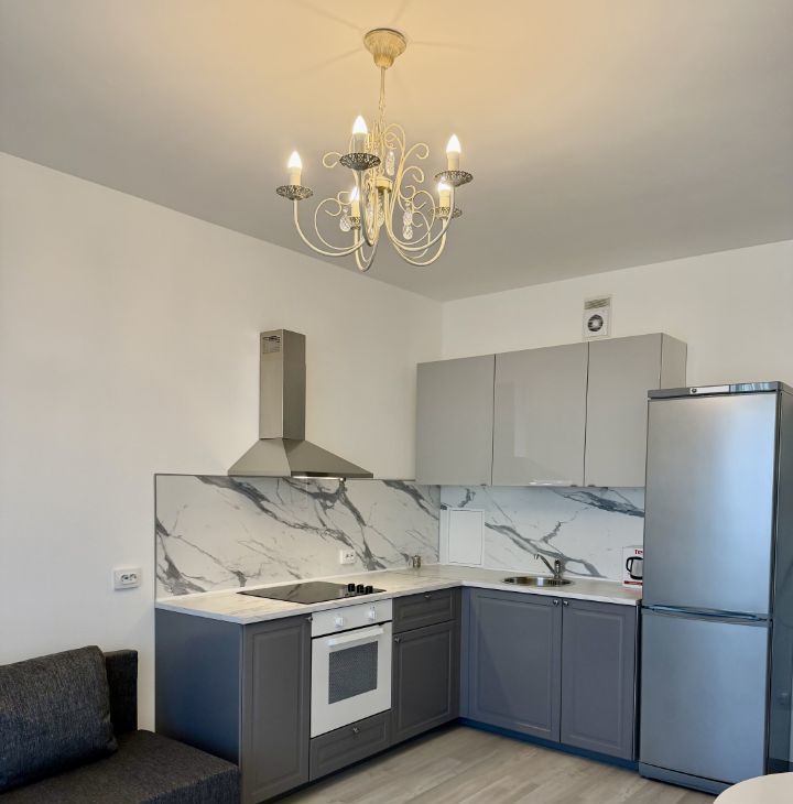 Квартира с евроремонтом, полностью готова для комфортного проживания. Современная кухня площадью 18 кв. м оснащена всей необходимой мебелью и техникой, включая холодильник. В комнате также есть мебель, а для вашего удобства телевизор и стиральная машина. В ванной комнате установлена просторная ванна, что добавляет дополнительный комфорт. Лоджия позволяет наслаждаться свежим воздухом и видом на окрестности.