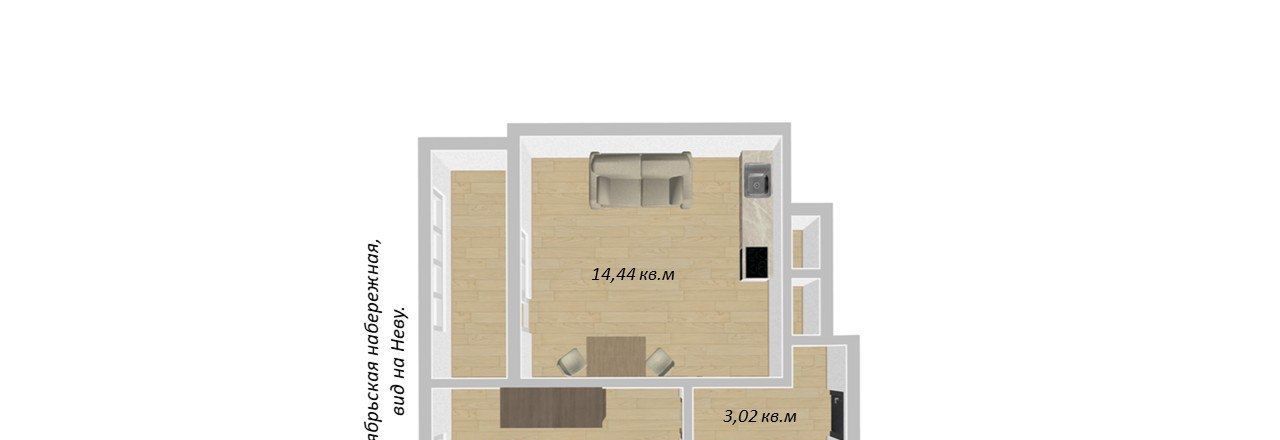Свободной планировки кв. Санкт-Петербург Российский просп., 1В (54.0 м²)