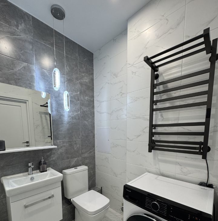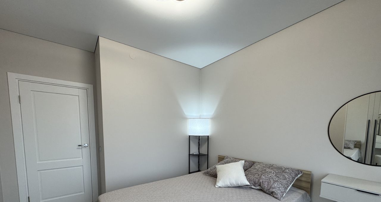 Квартира с двуспальной кроватью, ванной, посудомоечной машиной, в общем, имеется вся необходимая мебель и бытовая техника, квартира полностью готова к комфортному проживанию. Кухня-гостиная просторная, функциональная, с выходом на широкую лоджию, откуда открываются виды на Неву и огни большого города.