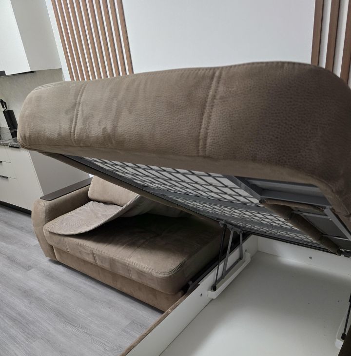 Угловой раскладной диван с подъёмным механизмом и местом для хранения,