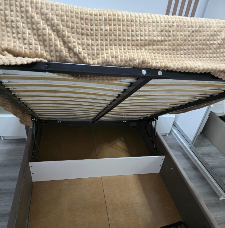 Кровать с матрасом и подъёмным механизмом, местом для хранения,