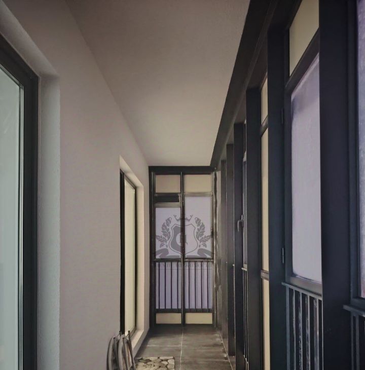 Большая лоджия с выходом из кухни и комнаты, панорамный вид на Неву.