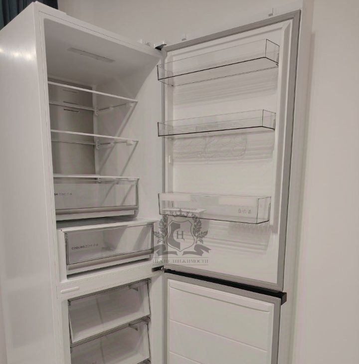 Стильная кухня с обеденной зоной и современной техникой: холодильник, посудомоечная машина, индукционная плита и духовой шкаф - всё новое и в идеальном состоянии.