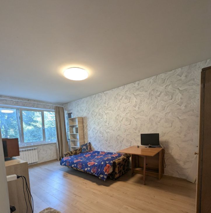 Квартира со свежим ремонтом и с лоджией. Под окнами зелень. Стеклопакеты. Раздельный санузел, ванна. 2-кам. холодильник, стир. машина, диван, шкаф, стеллажи, стол.