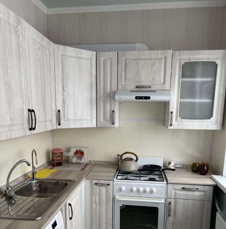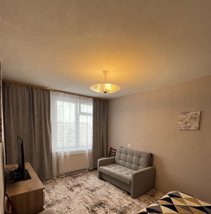 В квартире есть всё необходимое для комфортного проживания: косметический ремонт, мебель на кухне и в комнате, а также техника — холодильник, телевизор и стиральная машина. Планировка включает раздельный санузел с ванной, окна выходят на сквер Вавиловых.