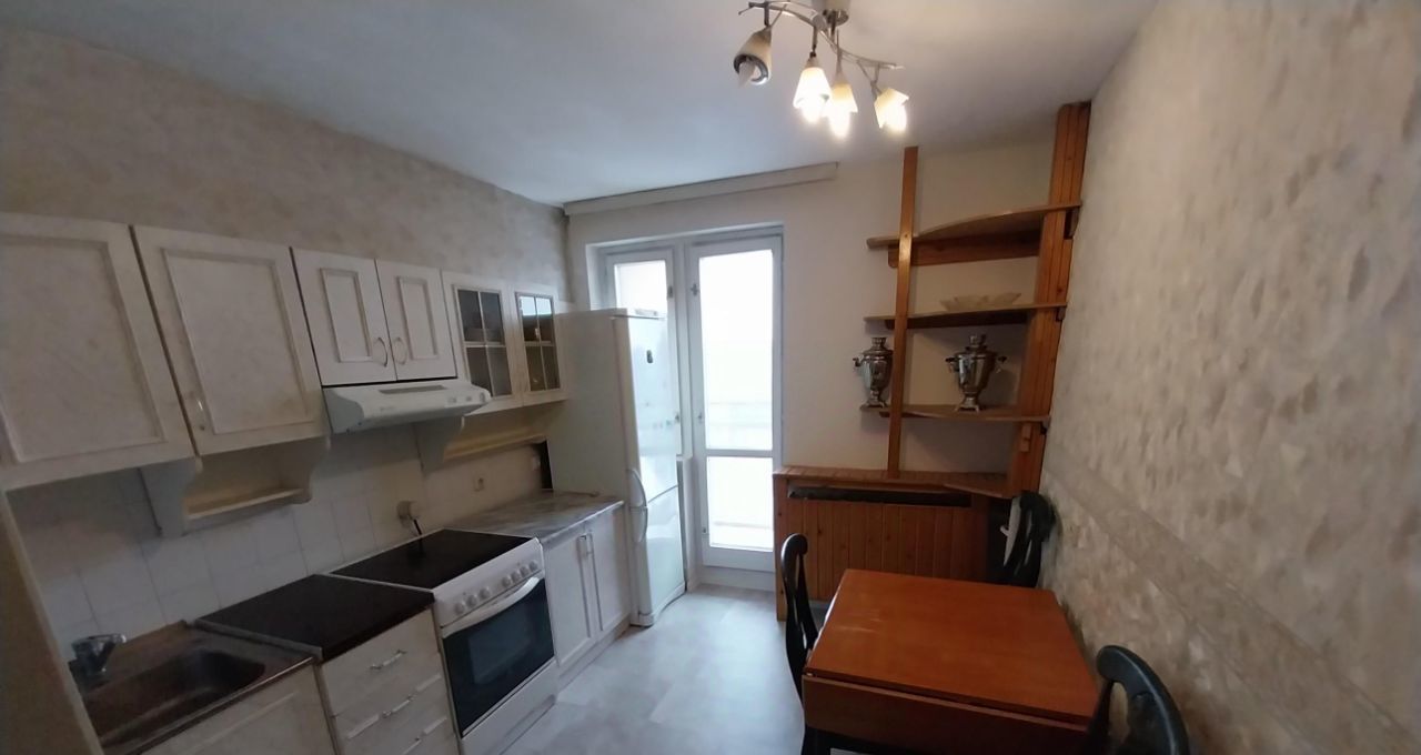 Просторна комната 19 метров и кухня правильной прямоугольной формы почти 9 метров с выходом на лоджию.