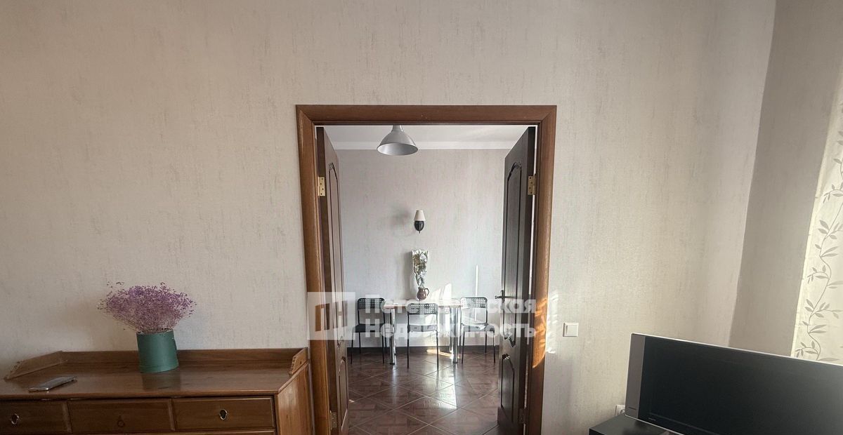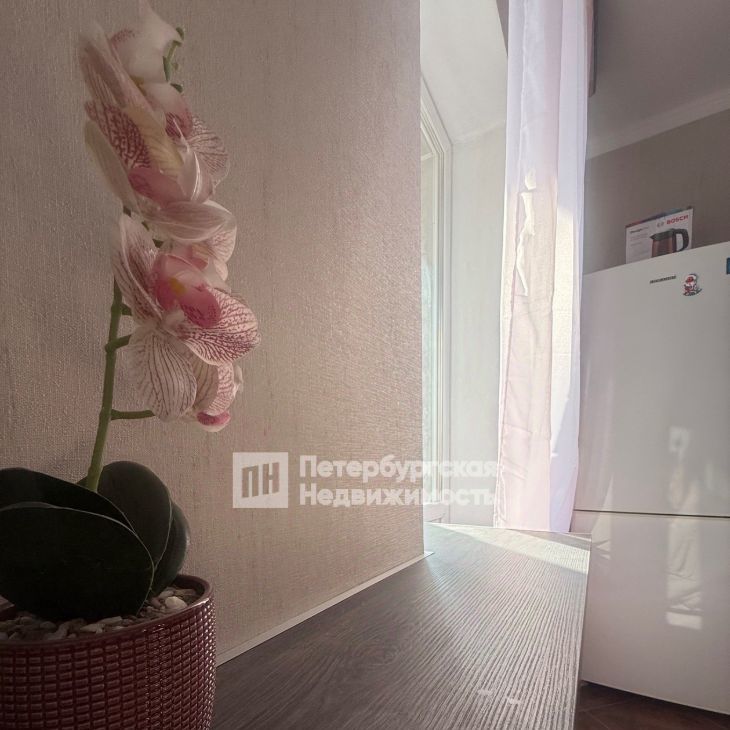 В квартире комната, кухня-столовая, застекленная лоджия 8 метров с встроенным шкафом, совмещенный с/у, встроенная кухня с бытовой техникой: варочная поверхность, вытяжка, духовой шкаф, холодильник. Окна выходят на тихую улицу Веденеева. В квартире светло и просторно.