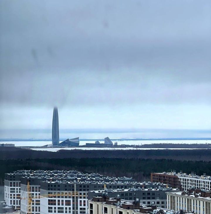 Главное преимущество квартиры — высокий этаж и красивый вид на город и Лахта-центр.