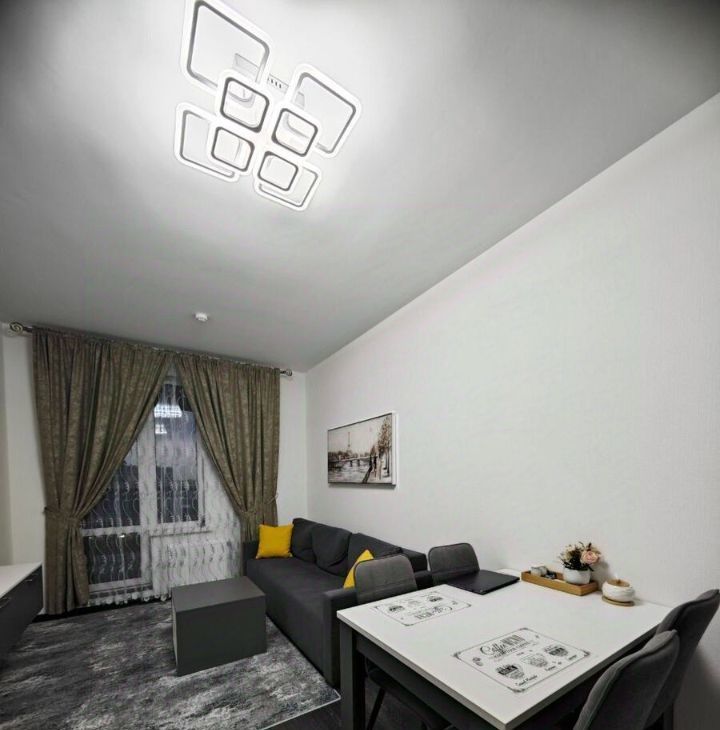 Общая площадь квартиры составляет 41 квадратный метр. Жилая комната площадью 28 кв.м дополнена просторной кухней размером 18 кв.м. Жильё находится на 16 этаже 25-этажного кирпично-монолитного дома, построенного в 2024 году. Высокие потолки и современный евроремонт создают комфортную атмосферу. В квартире имеется лоджия, окна выходят во двор, обеспечивая тишину и приватность.