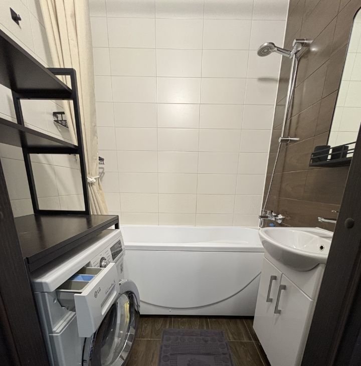 С/у раздельный, оборудован стиральной машинкой, полкой для хранения, зеркалом.