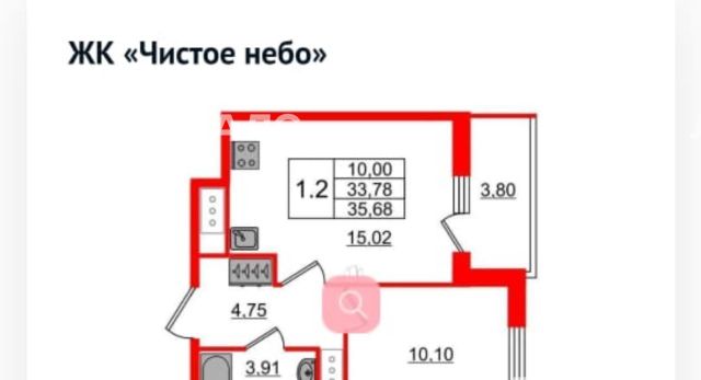 1-к кв. Санкт-Петербург ул. Верхне-Каменская, 9к1 (38.0 м²)