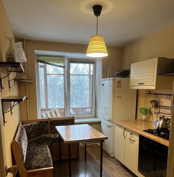 Высота потолков — 2,5 метра. Жилая площадь составляет 15,5 кв. м, а кухня — 8 кв. м. Дом построен в 1966 году и находится в районе метро Академическая, до которого можно дойти за 13 минут пешком.