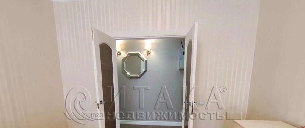 Общая площадь 65 кв.м, комнаты 18+17 кв.м, кухня 8 кв.м, два санузла, две гардеробные, лоджия.