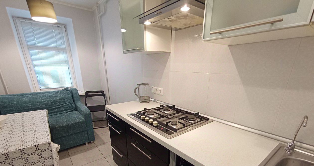 Продуманная планировка: отдельная кухня и просторная комната. Квартира укомплектована всей необходимой мебелью и техникой для комфортной жизни.