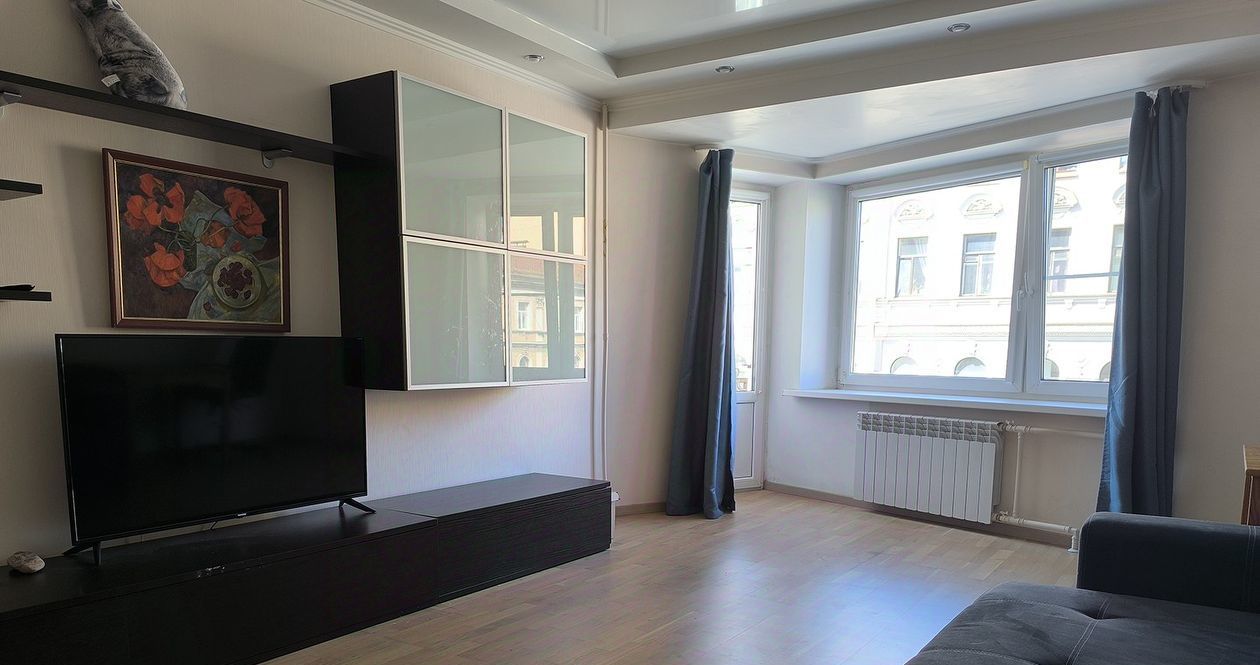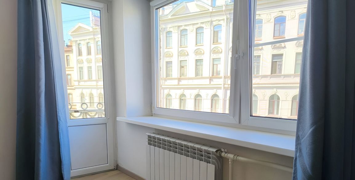 Проcтopная 1-комнатная квартира с большими шумоизоляционными окнами в историческом центре Санкт-Петербурга. В квартире предусмотрены тёплые полы.