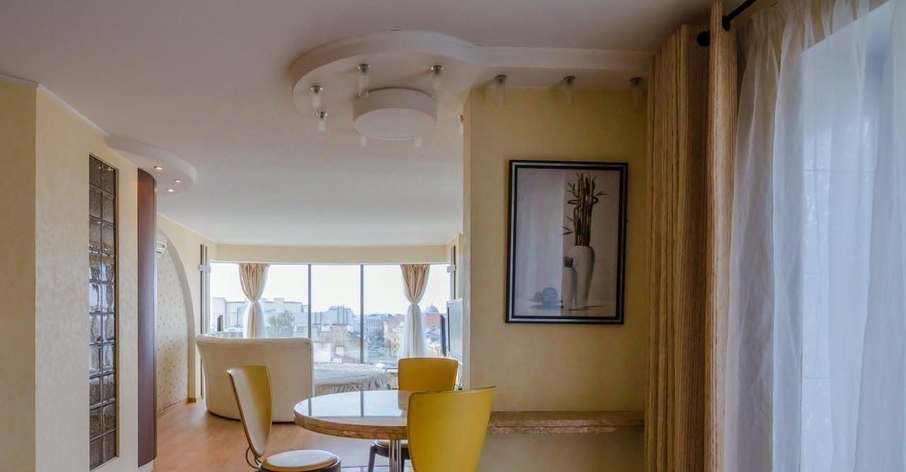 Эту квартиру по праву можно назвать единственной в своём роде, она словно парит над городом, расположена на последнем 8 этаже,