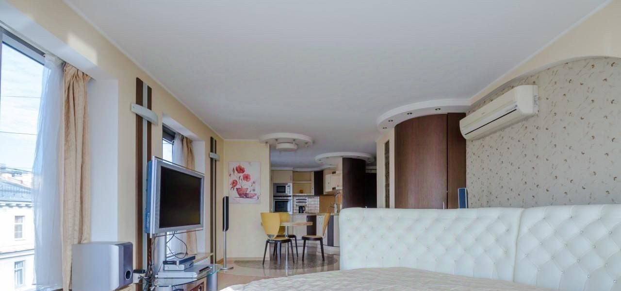 Общая площадь квартиры 45.1м2: спальная комната 21.8м2, кухня 10.2м2, с/у с джакузи. Дизайнерский ремонт. Выполнена отделка высокого уровня в современном стиле. Мебель, вся бытовая техника. Кондиционер. У квартиры выход на балкон 3.7 м2, с которого открывается живописный вид на крыши города.