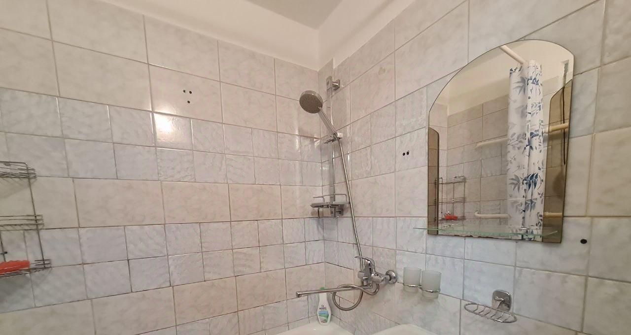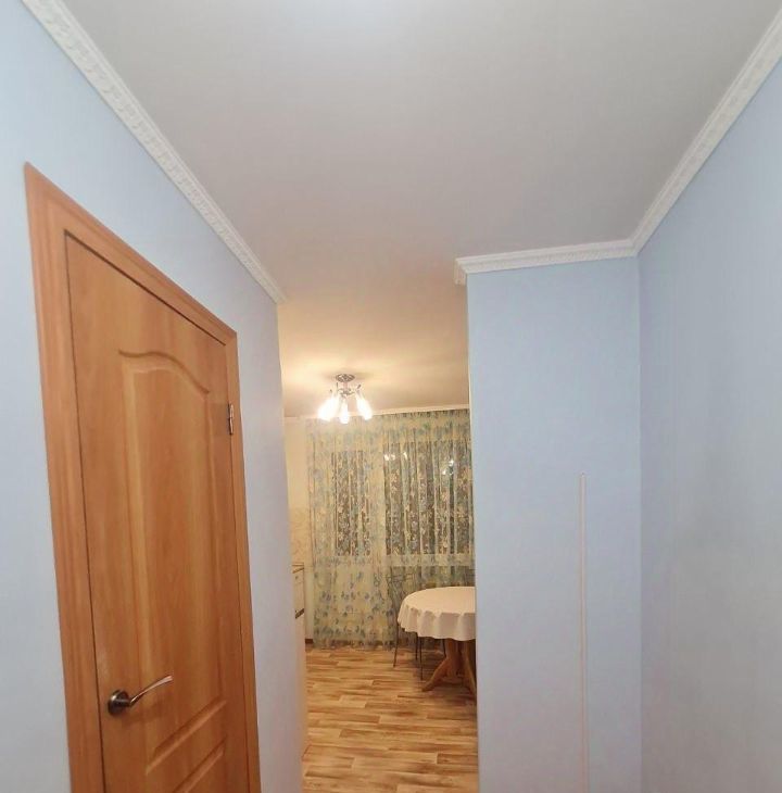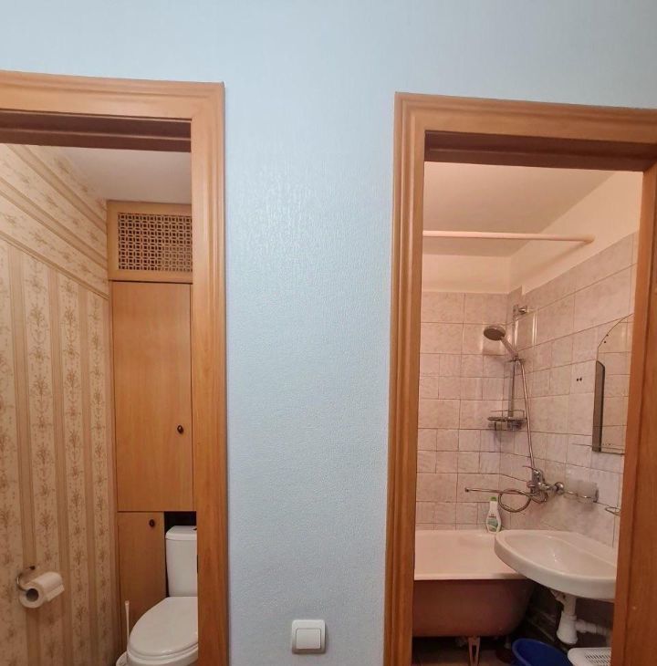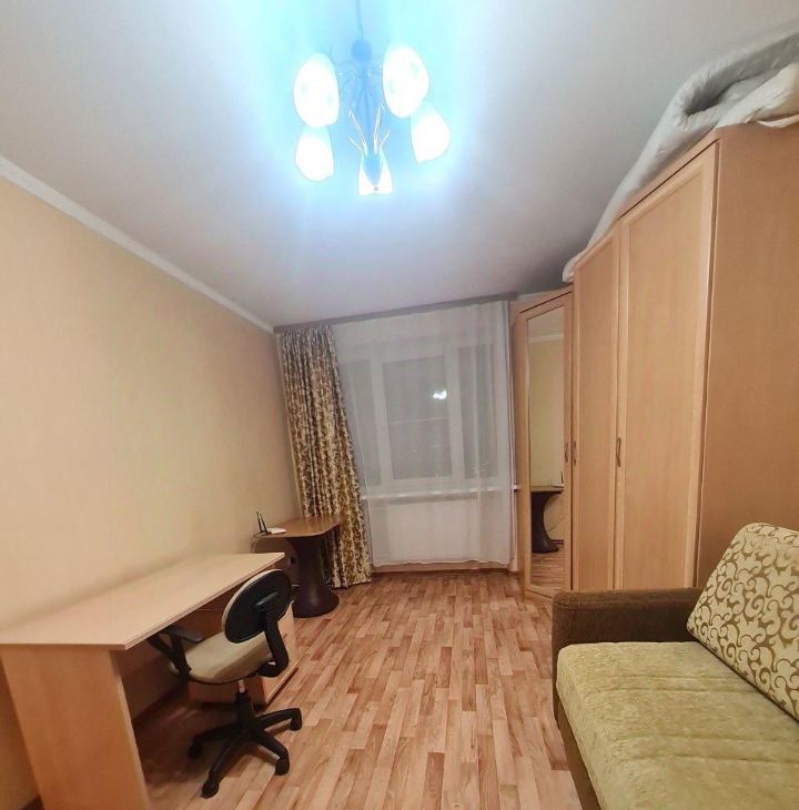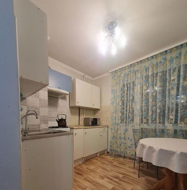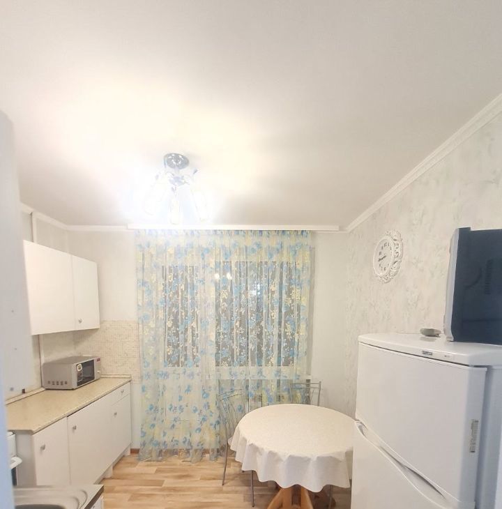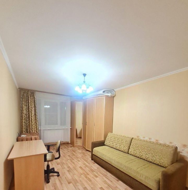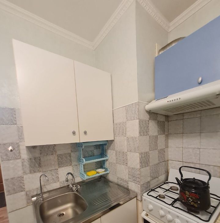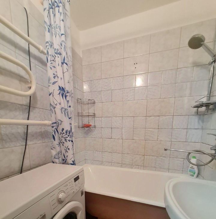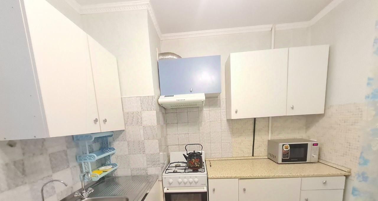 Кухня просторная, оборудована кухонной мебелью, круглым обеденным столом со стульями, холодильником, газовой плитой с духовкой и вытяжкой, эл.чайником. Ванная и туалет выложены кафелем, установлена стиральная машинка. В комнате удобное спальное место - диван, вместительный большой шкаф, компьютерный стол и телевизор. В прихожей есть встроенный шкаф под верхнюю одежду и обувница.