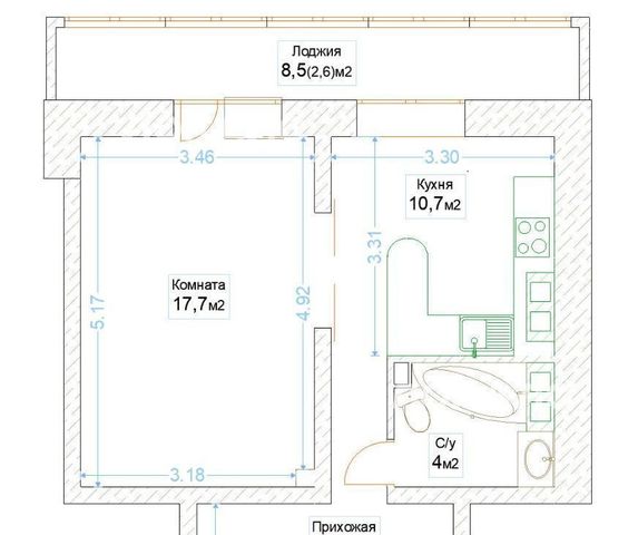 • Общая площадь 48,8 кв.м, Площадь квартиры 40,3 кв.м +лоджия 8,5кв.м.