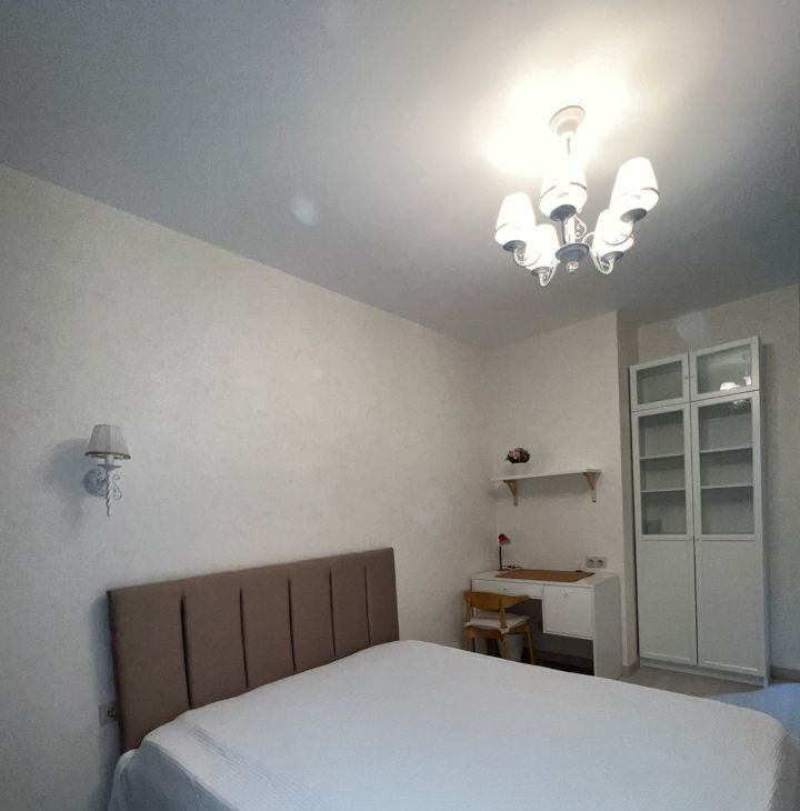 Квартира теплая, уютная. В комнате имеется полноценная двуспальная кровать шириной 160 см с подьёмным механизмом и вместительной нишей для хранения вещей, вместительный шкаф с полноценной системой хранения, письменный стол, который можно использовать как рабочее место.