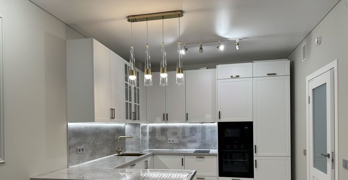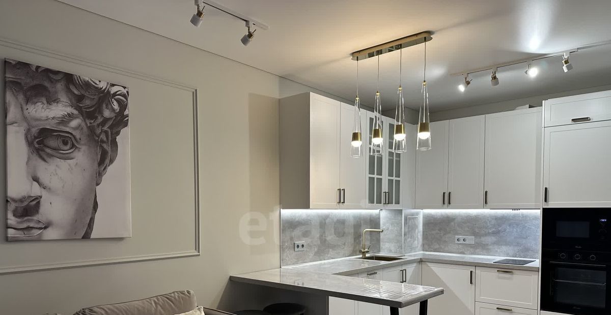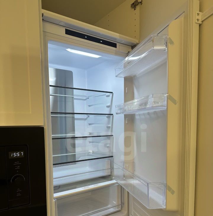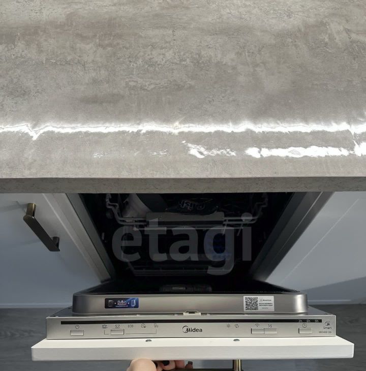 Просторная кухня гостиная, оборудованная всем самым необходимым: посудомойка, холодильник, духовой шкаф, микроволновая печь, сенсорная электроплита , вытяжка. Идеальное пространство для приготовления блюд с комфортной системой для хранения.